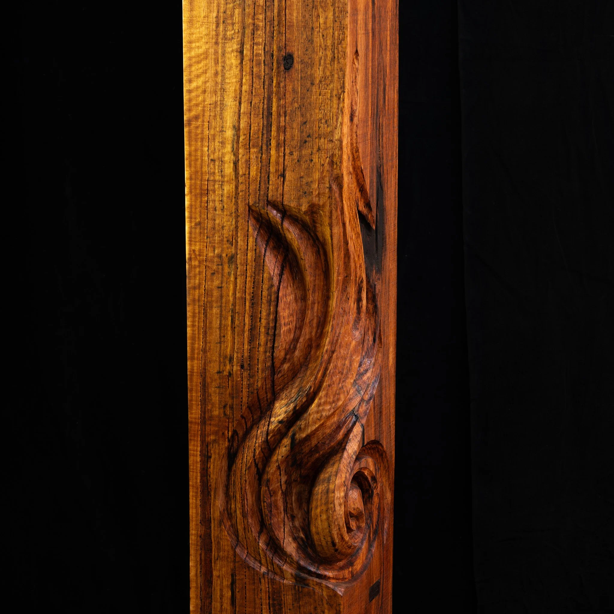 Inspired by small hand held carvings. Size 1900mm x 500mm diameter. Weight estimate is 150kg. Carved from Grevillea robusta (Silky Oak)